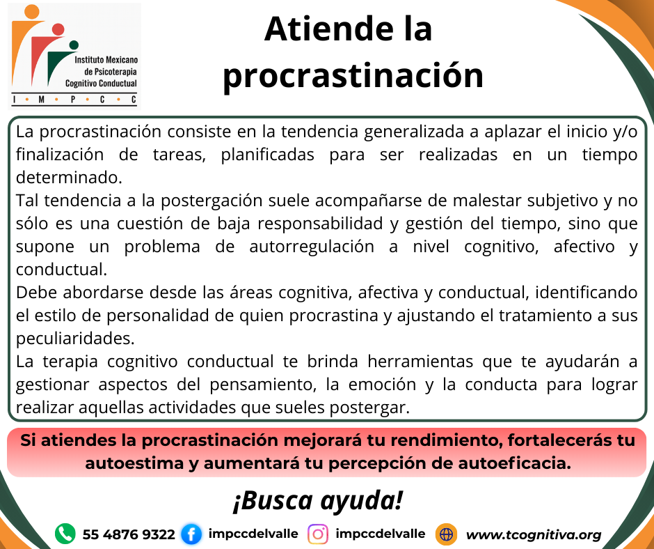 Tal tendencia a la postergación suele acompañarse de malestar subjetivo y no sólo es una cuestión de baja responsabilidad y gestión del tiempo, sino que supone un problema de autorregulación a nivel cognitivo, afectivo y conductual.