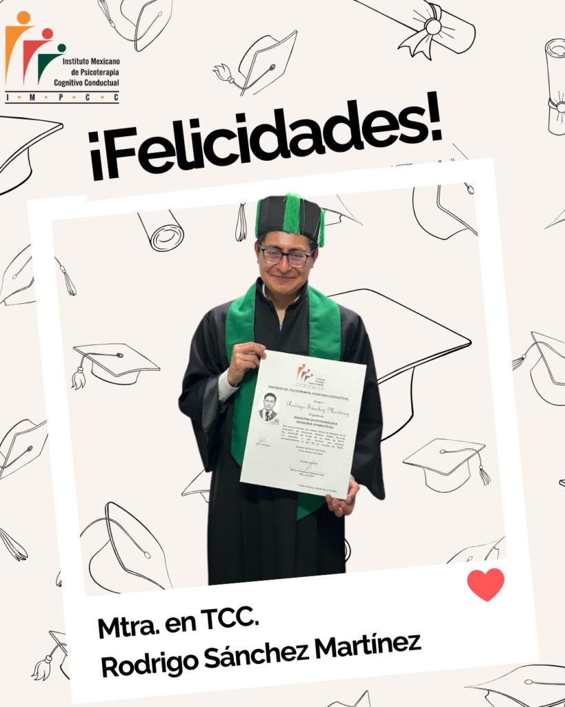 ¡Ya has logrado tu grado de Maestría en Terapia Cognitivo Conductual! Es el reconocimiento a todos tus esfuerzos y dedicación lo que te ha llevado al éxito académico.