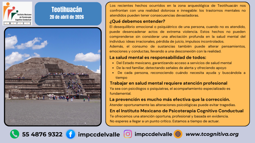 Los recientes hechos ocurridos en la zona arqueológica de Teotihuacán nos confrontan con una realidad dolorosa e innegable: los trastornos mentales no atendidos pueden tener consecuencias devastadoras.